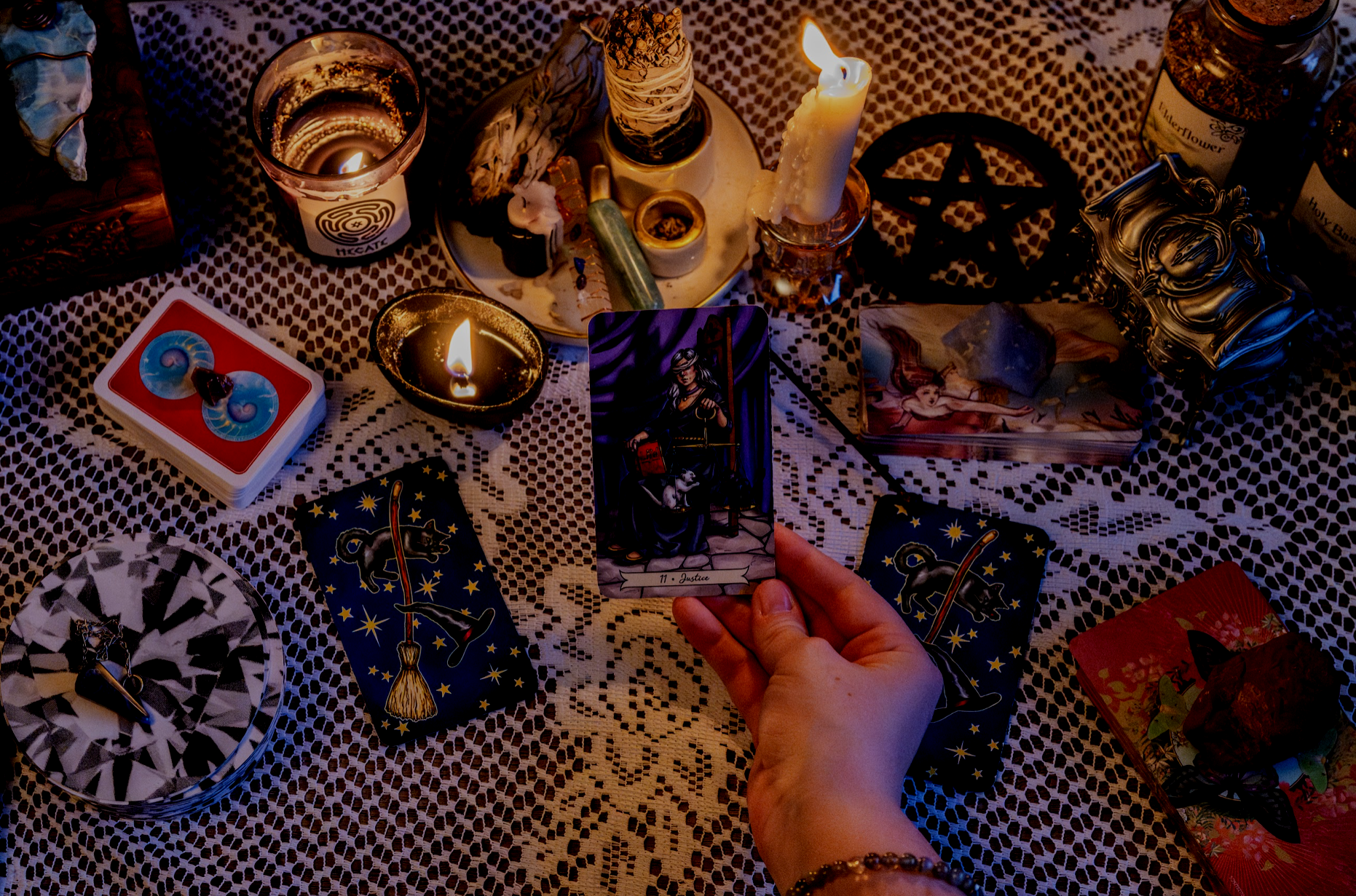Created by Justice, an intuitive tarot reader and storyteller with a background in Human Development and Psychology, this space blends intuition, archetypes, and reflection into supportive guidance.